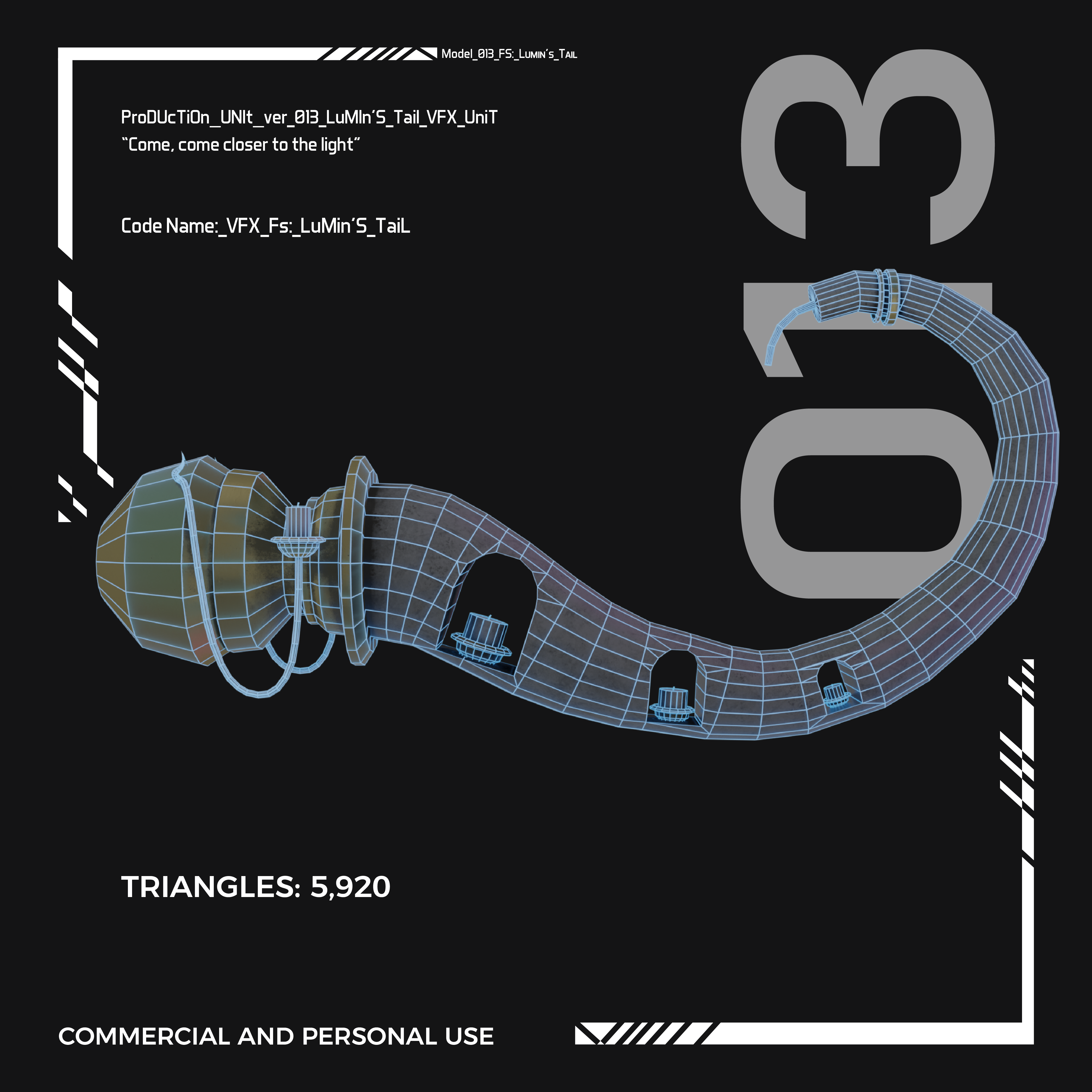 "Lumin's Tail" is part of a new collection featuring a 2 in 1 product that consists of 1 Mesh (Lumin's Tail) and 1 VFX (Azure Flame) that can be both used either together, or solo on your own commercial / personal projects.