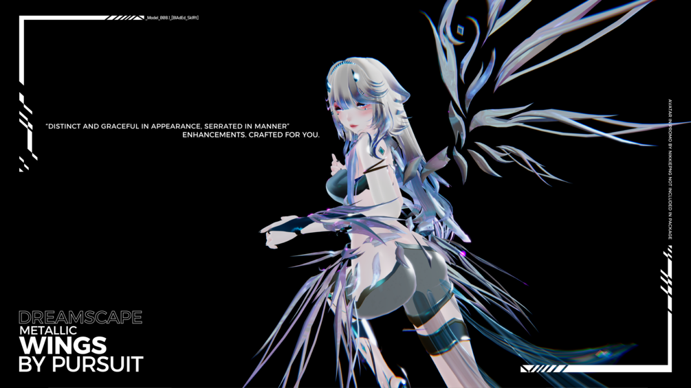 Please note that "Alternate Pose [Bladed Skirt] fbx" has an alternate rig/ Phys bones setup from the original "Metallic Wings"*